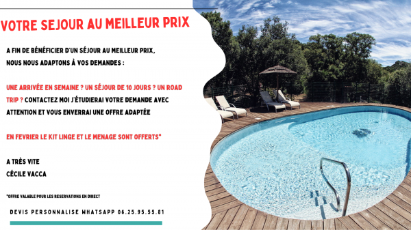 Sole di Dumè ensemble de 10 villas pour 2 à 4 personnes avec une jolie piscine commune chauffée en hors saison (15×7) à la forme originale de la Corse. Détente et convivialité vous attendent dans cette petite résidence familial